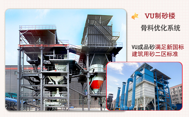 在制砂流程上,斗提機(jī)將 0 - 25mm 的原料,如石屑、瓜米石等,輸送至頂樓,由輸送皮帶送入 VU 沖擊破。VU 沖擊破利用高頻石打石研磨技術(shù),對(duì)原料進(jìn)行初次破碎和研磨,使物料粒度初步細(xì)化。隨后,物料進(jìn)入??睾Y進(jìn)行分選,篩上料會(huì)返回 VU 沖擊破再次加工,保證物料充分破碎。篩下料則進(jìn)入 VU 粒優(yōu)機(jī),通過瀑落整形等技術(shù),將物料整形成準(zhǔn)成品砂,在此過程中,成品砂粒型以高方形度和球形度為主,表面棱角、毛刺大幅減少,明顯降低了表面積和孔隙率,提高了流動(dòng)性。同時(shí),VU 制砂樓配套脈沖式除塵器,能精準(zhǔn)控制石粉量,使石粉含量符合精品機(jī)制砂標(biāo)準(zhǔn)。最后,準(zhǔn)成品砂通過加濕攪拌機(jī)均勻拌合后成為成品機(jī)制砂,石粉被統(tǒng)一儲(chǔ)存在粉礦倉(cāng)中,可進(jìn)行回收利用。