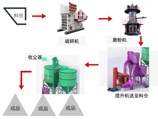 白云石加工分為四個(gè)階段,破碎、磨粉、分級(jí)和集粉四個(gè)階段。破碎階段選擇破碎機(jī),破碎到可以進(jìn)入磨粉機(jī)的細(xì)度,磨粉階段就將符合規(guī)格的白云石經(jīng)提升機(jī)送至料倉,再經(jīng)振動(dòng)給料機(jī)將其均勻定量的送入磨粉機(jī)的研磨室內(nèi)進(jìn)行研磨。這一步就需要磨粉機(jī)的選擇,需要的細(xì)度是多少,粗磨、細(xì)磨還是超細(xì)磨等進(jìn)行選擇。第三階段就要進(jìn)行分級(jí),將不合格的物料分離出來,送入磨粉機(jī)重新加工,合格的物料進(jìn)入第四階段集粉,將成品收集到收塵器,收集的成品經(jīng)出料口由輸送裝置送至成品料倉。在這個(gè)過程中要注意排放,要符合環(huán)保要求。