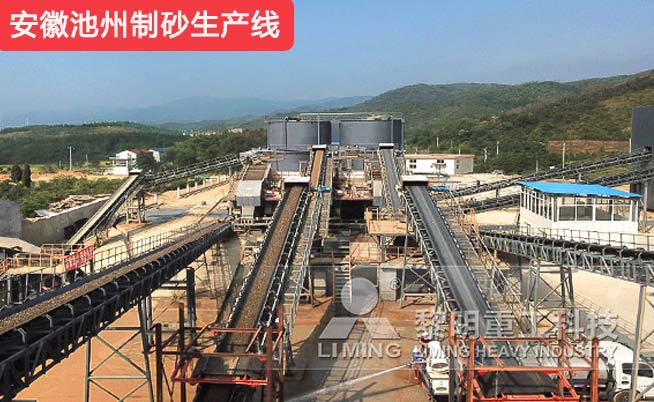 安徽池州制砂生產(chǎn)現(xiàn)場,一套生產(chǎn)線行云流水,配置齊全