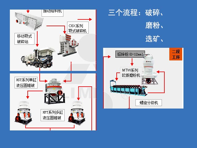我們首先來了解一下鉛鋅礦的生產(chǎn)加工流程以及用到哪些設(shè)備。鉛鋅礦石的加工過程主要包括三個流程破碎、磨粉和選礦。