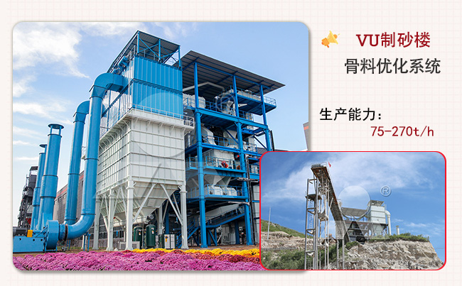 VU制砂樓就是干法制砂系統(tǒng),采用高度集約的塔樓式全封閉布置,集制砂、粒型優(yōu)化、石粉控制、級(jí)配調(diào)整、含水率控制、環(huán)保處理于一體,不但明顯提高了生產(chǎn)效率,更實(shí)現(xiàn)了機(jī)制砂粒型、級(jí)配、含粉量等各項(xiàng)指標(biāo)的提升,使機(jī)制砂性能媲美天然砂。