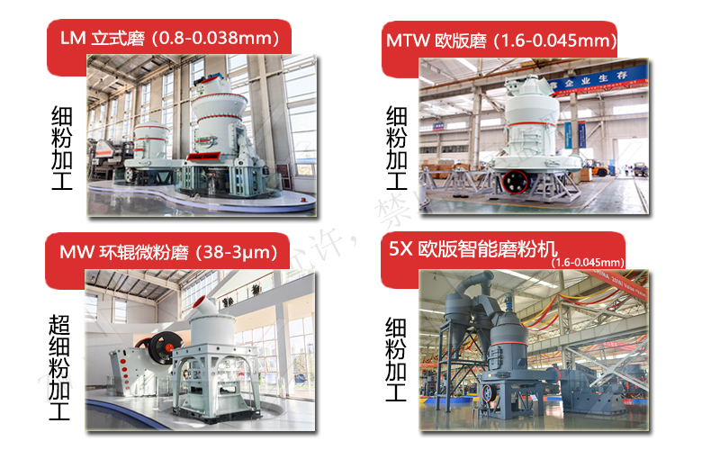 注:細(xì)粉加工一般選用LM立式輥磨機(jī)、MTW歐版磨機(jī)、5X歐版智能磨粉機(jī);超細(xì)粉加工一般選用LUM超細(xì)立式磨機(jī)、MW環(huán)輥微粉磨粉機(jī),粗粉加工選用CM歐式粗粉磨、直通式離心磨。