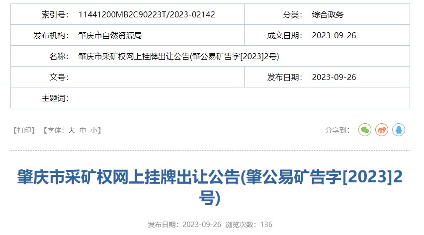 歡迎轉(zhuǎn)載《廣東肇慶儲量約1.9億方花崗巖大礦采礦權掛牌出讓》,轉(zhuǎn)載請注明來源:http://m.ottawabandb.com/news/788.html