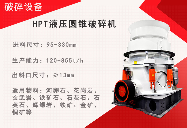 圓錐破碎機用于顎式破碎機之后進行二級細碎整形,適用于中硬以上的礦石和巖石的破碎。它具有破碎比大、生產效率高、維修方便等優(yōu)點。在一些大型企業(yè)中,圓錐破碎機是常用的破碎設備之一。滿足時產500噸的圓錐破碎機型號有HPT500、HPT800、HST315、HST450、HST560、HST750等。
